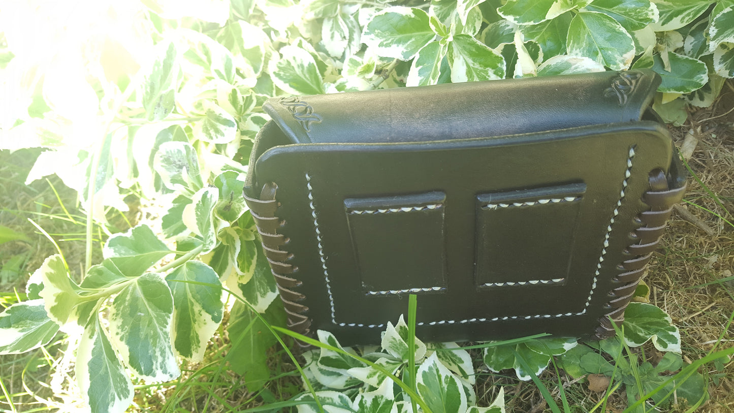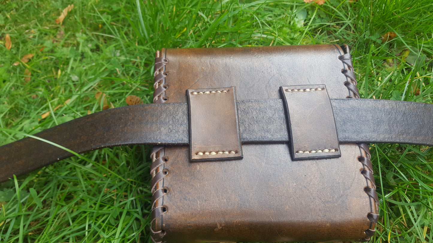 Only hand stitching and lacing is used in the construction of the pouch making it very strong and durable.
