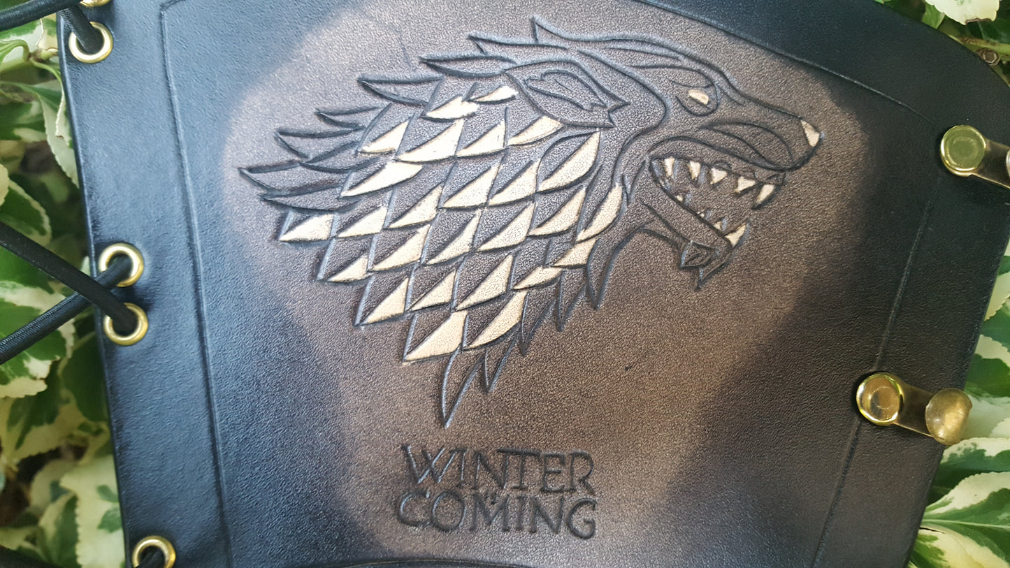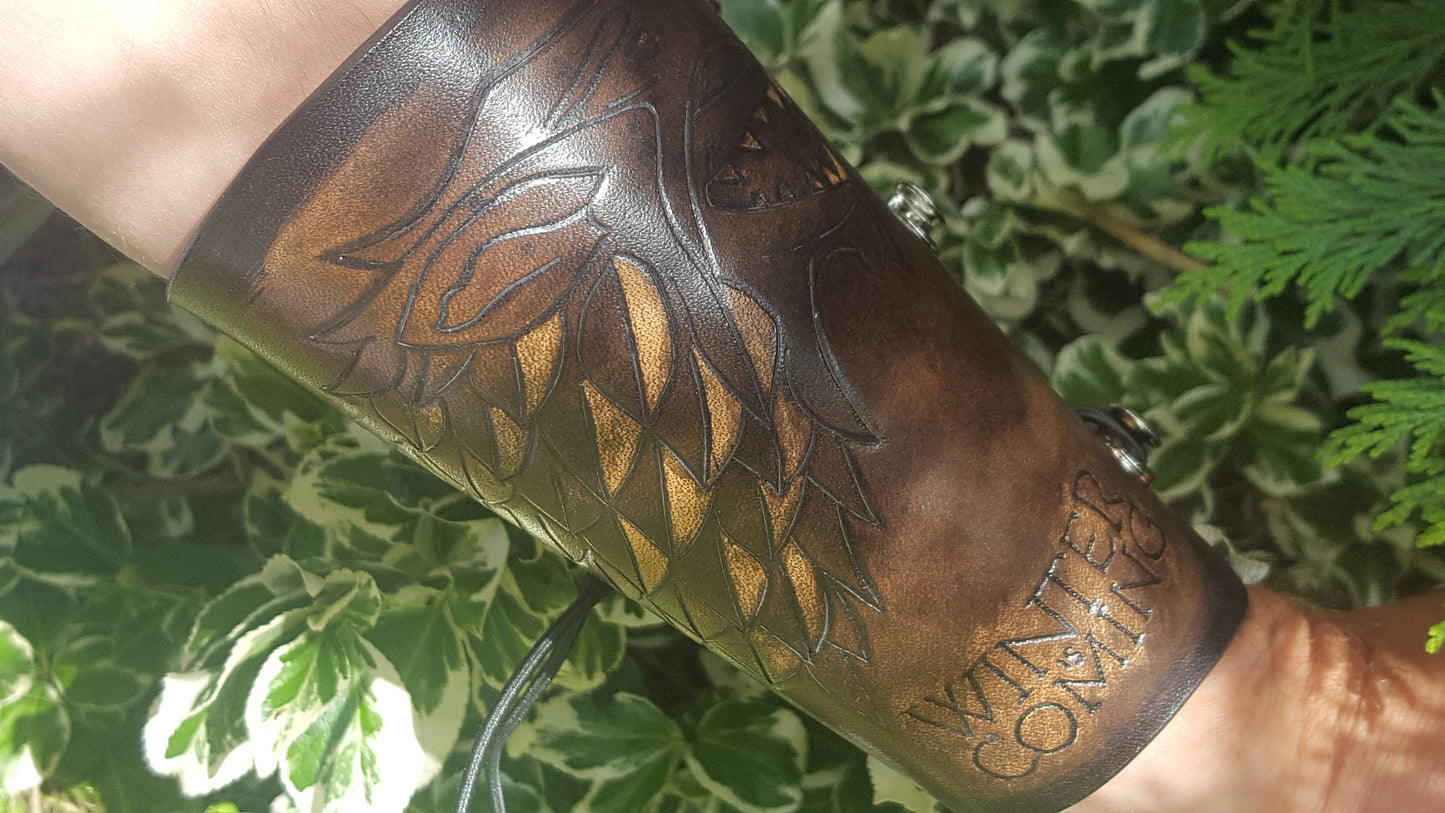Handcrafted Leather Bracer - Game of Thrones - House Stark