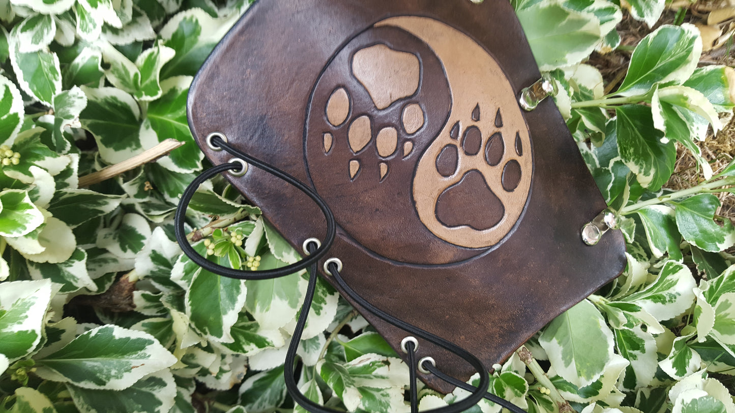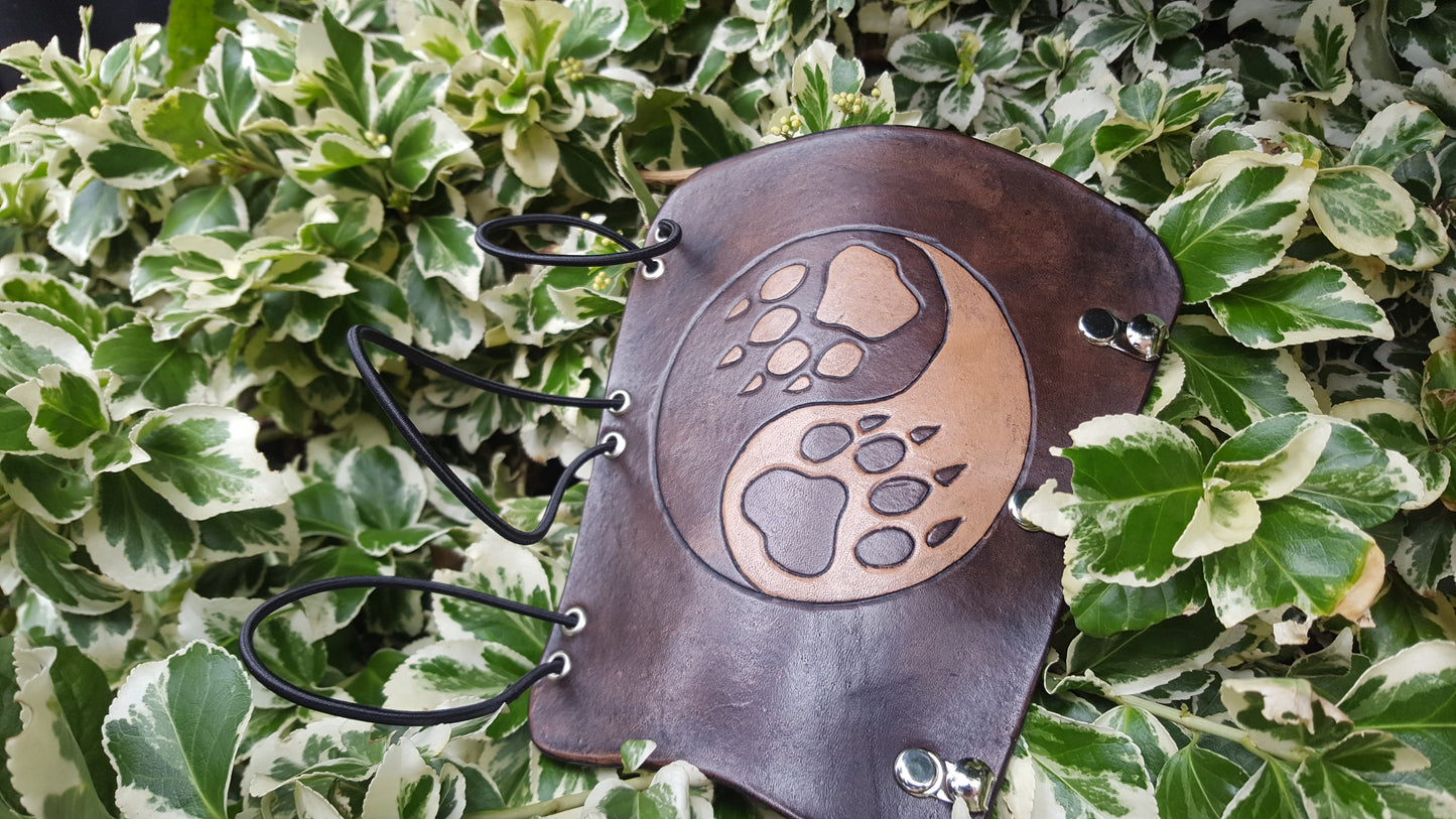 Handcrafted Leather Bracer - Ying Yang Wolf Prints