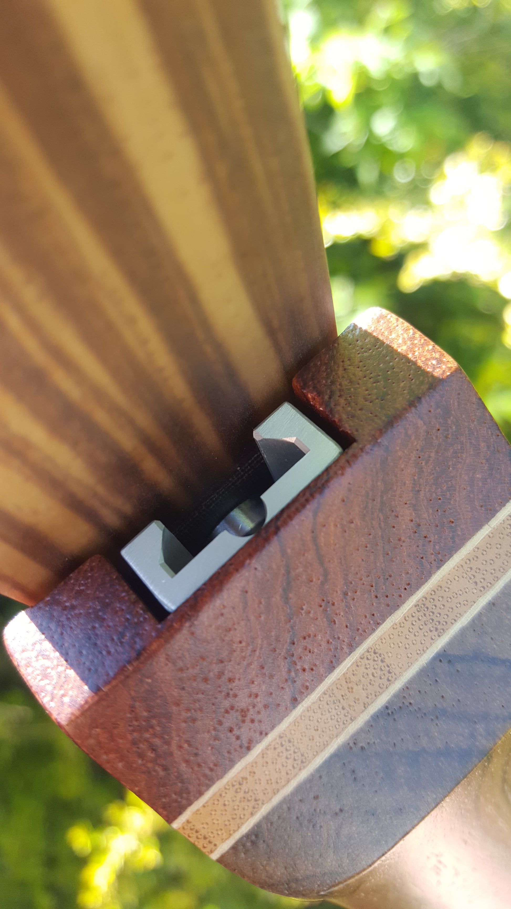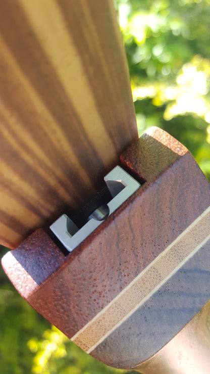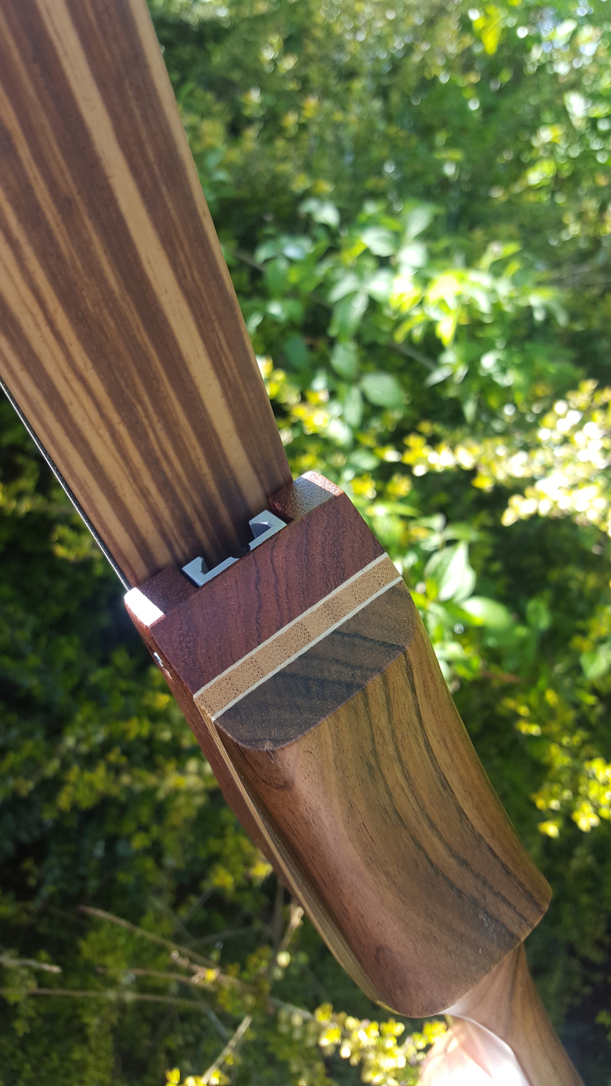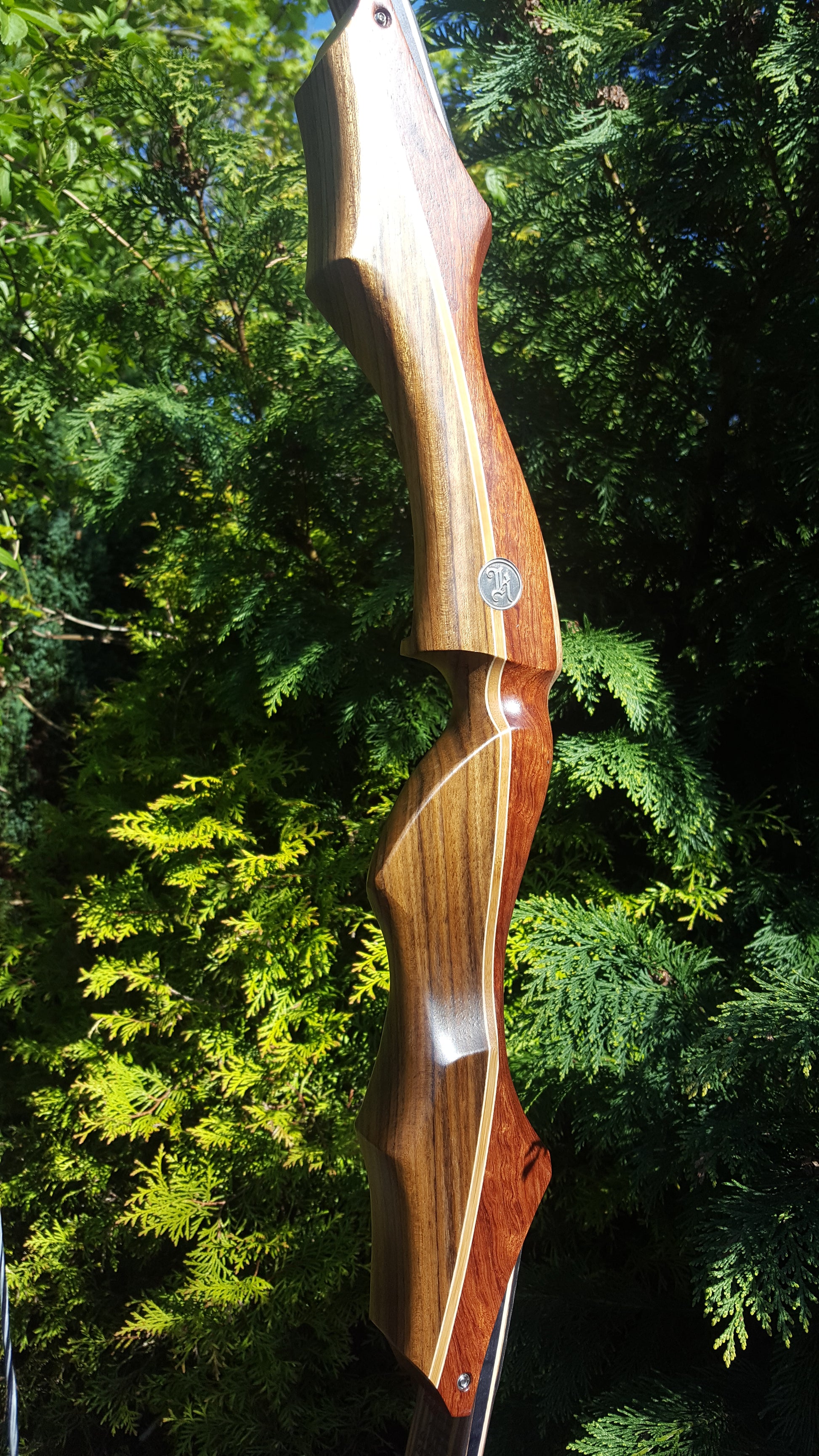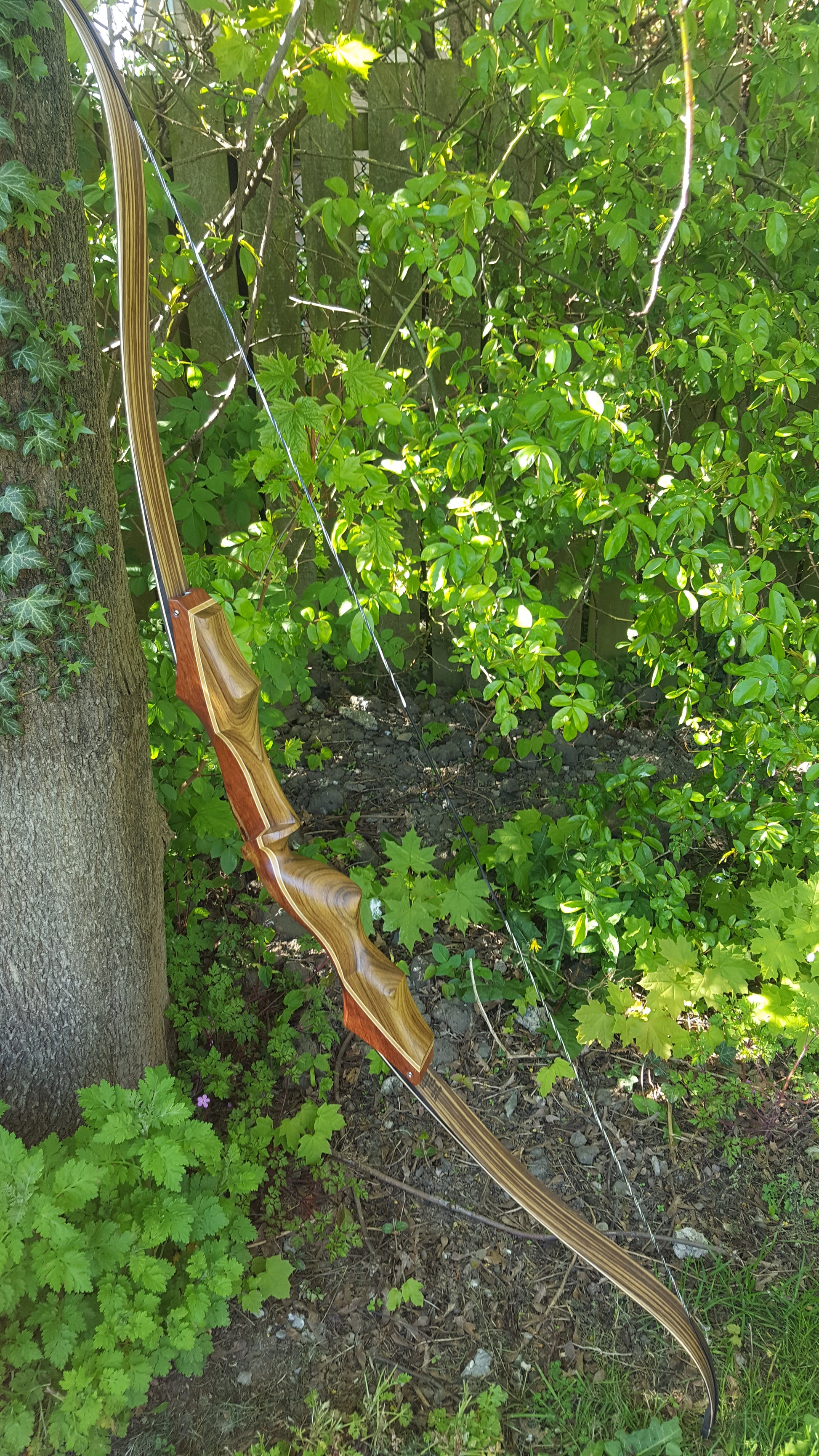 The 21” Bubinga and Amazaque riser combines with clear fibreglass and Zebrano wood limbs for a versatile and smooth shooting 64” bow.