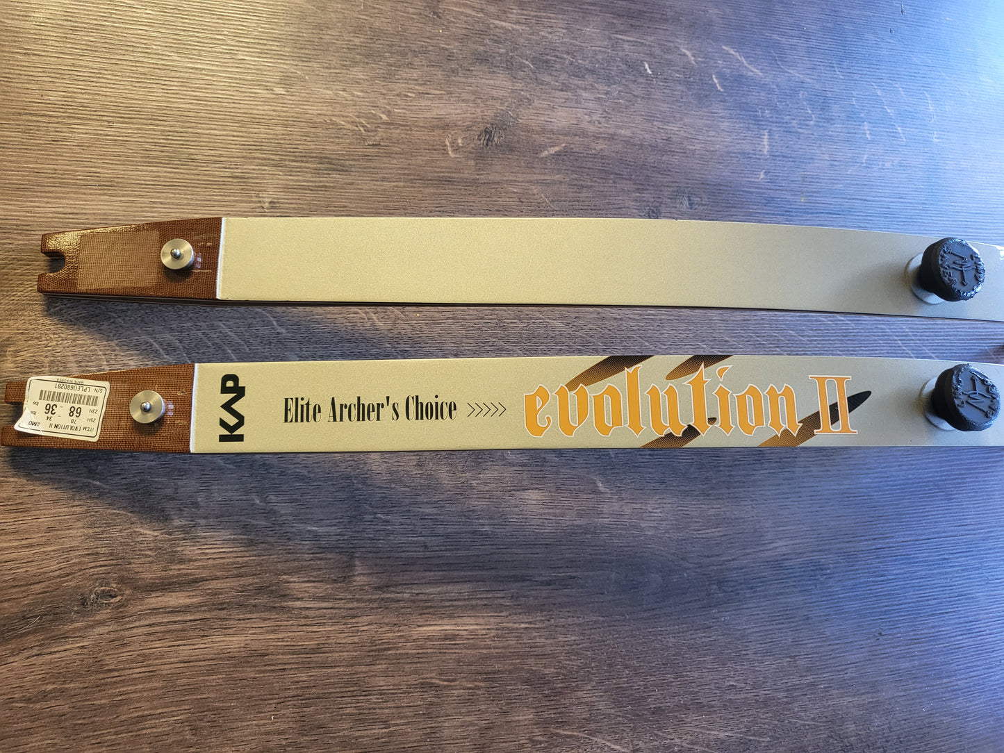 On a 25" standard Olympic riser these will make a 70" bow. The draw weight / strength is 34# at 28" draw. They are 36# on a 23" Riser, as can be seen in the photos.