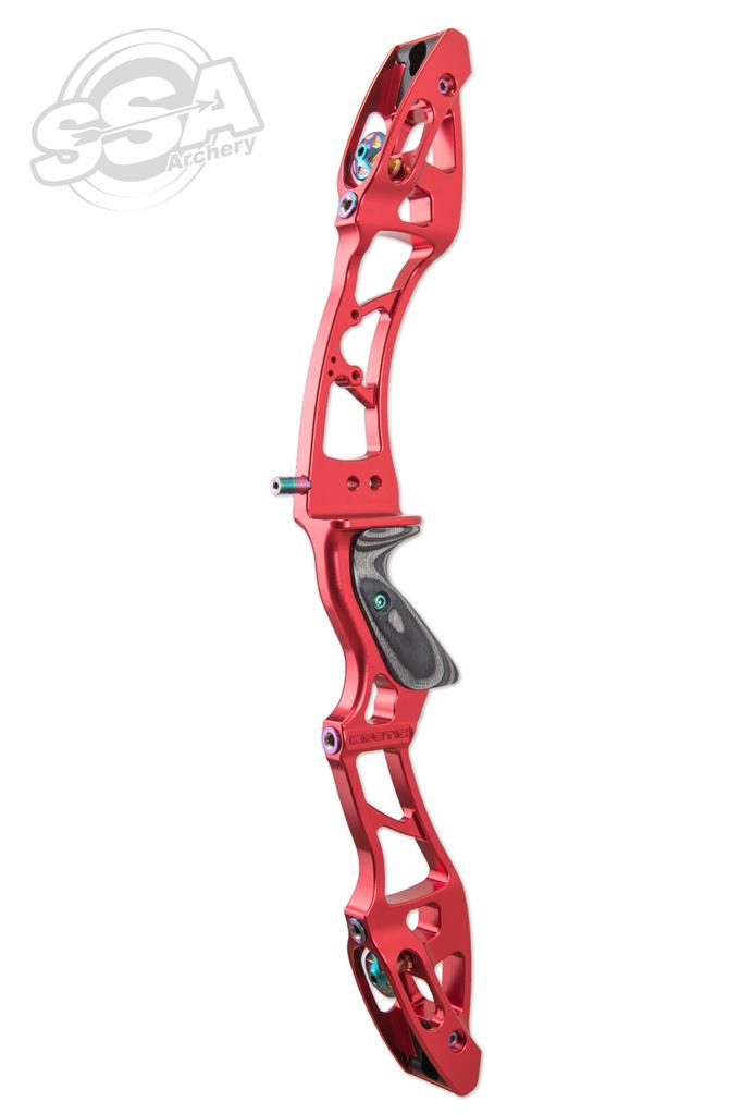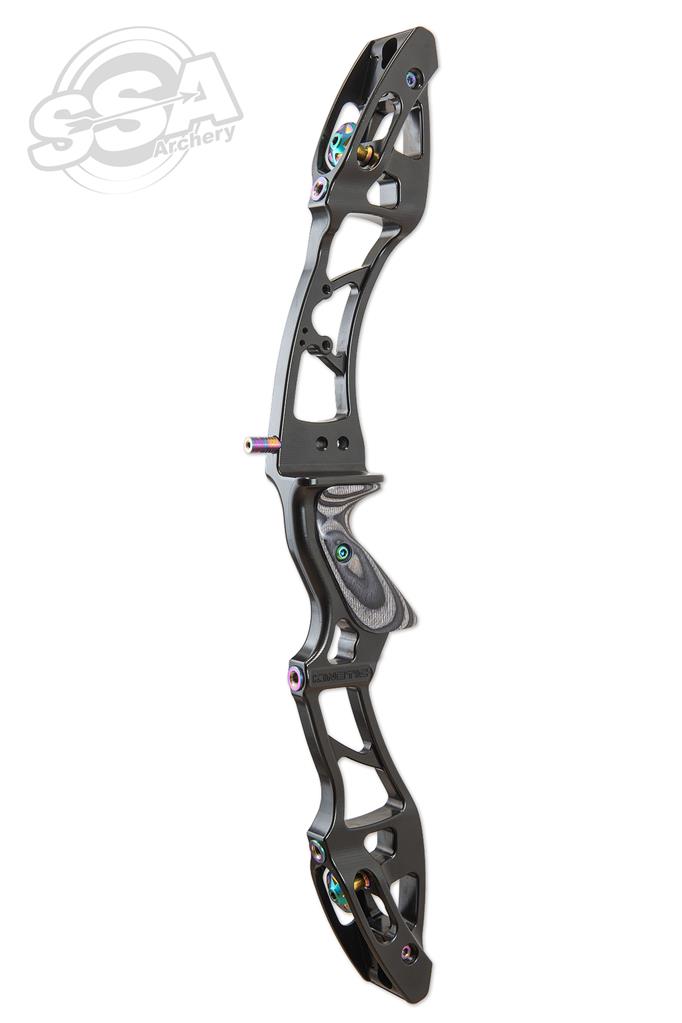 Made from high quality 6061 aluminum makes this risers performance on par with that of much more expensive models out there. If you are looking for a mid priced riser that will last you a lifetime then the Sovren is an ideal choice. It comes in a range of attractive colours with the nice addition of 'Spectra' coloured fittings on the limb bolts and stabaliser bushings. A comfortable wooden grip finishes this riser off perfectly.