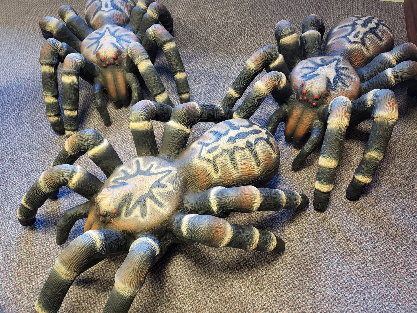 Please ask us about shipping lead times. Please note photos show both the Bird Spider and the Little bird Spider (Spiderlings), the spiderlings are the targets with support cord coming out from the front and back in straight lines to assist with securing.