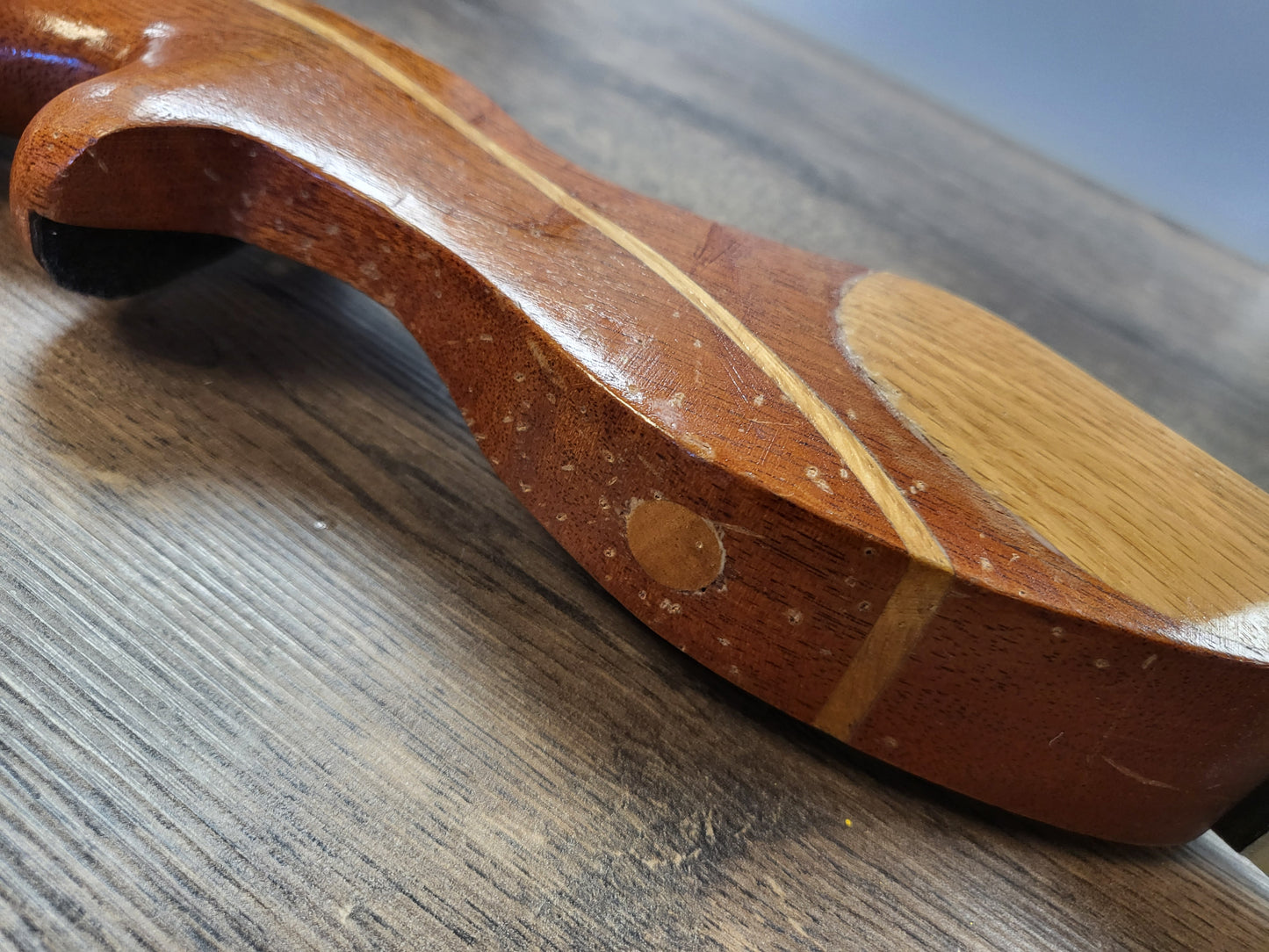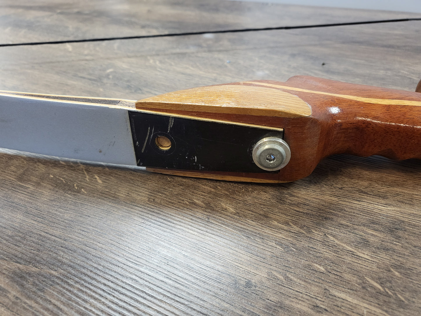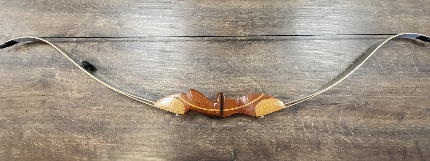 This listing is for a second hand take down recurve, with what appears to be a custom riser made most likely by a carpenter to suit the archer.